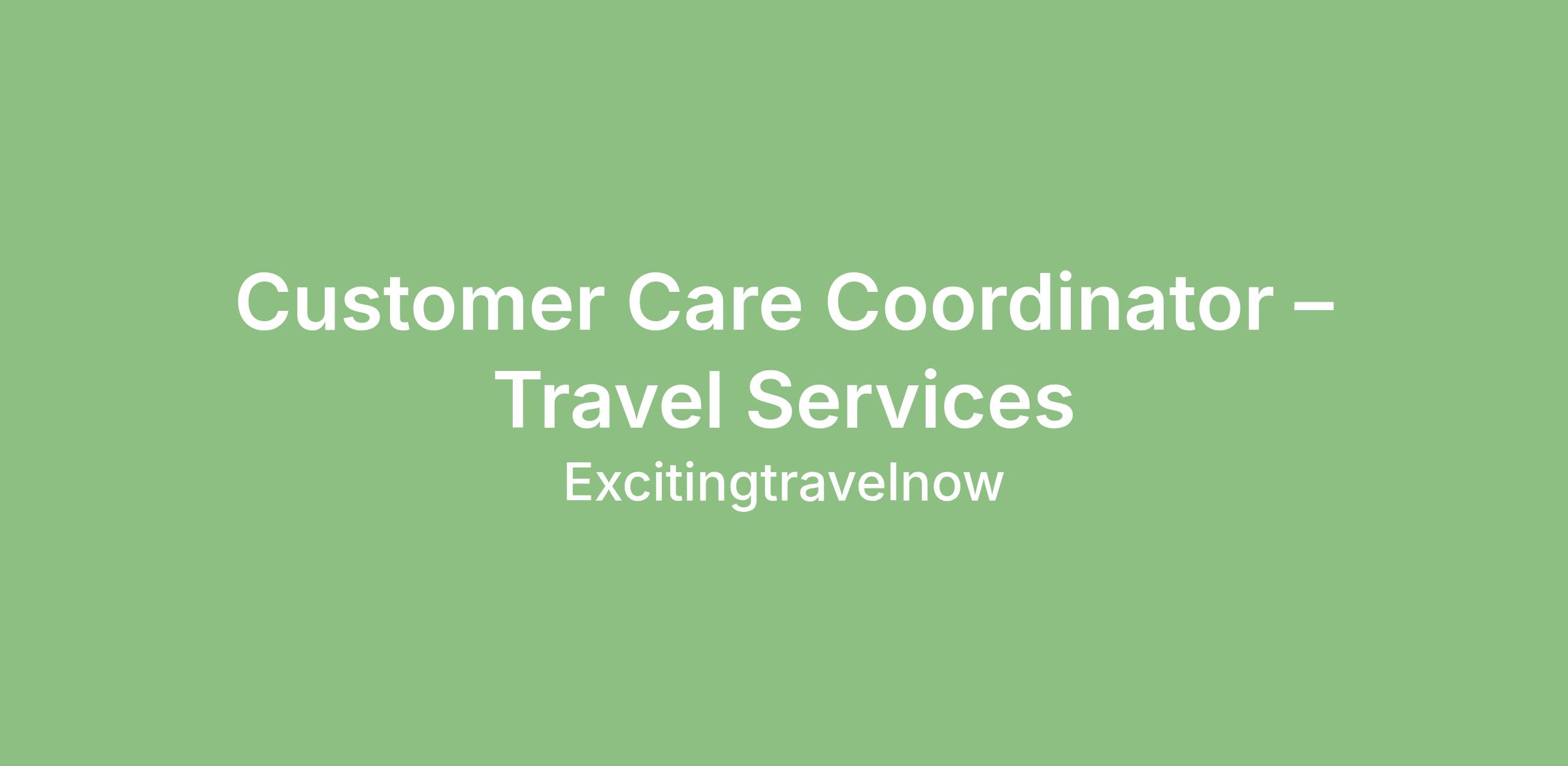 We are seeking a Customer Care Coordinator who is passionate about delivering excellent service and building positive client relationships. In this role, you will help guide travelers through the planning process while ensuring each client receives attentive, professional support.