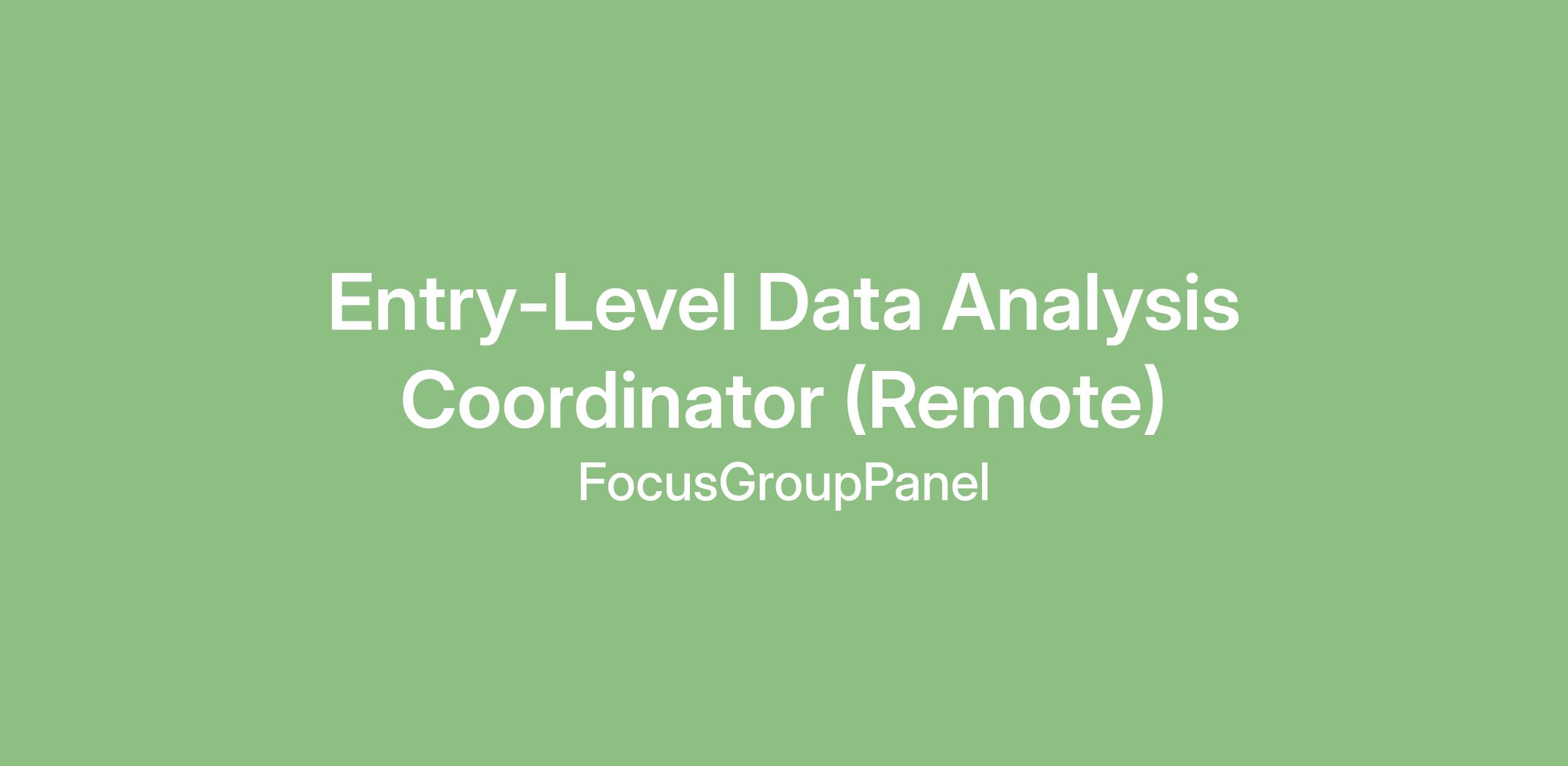 Entry-Level Data Analysis Coordinator (Remote)