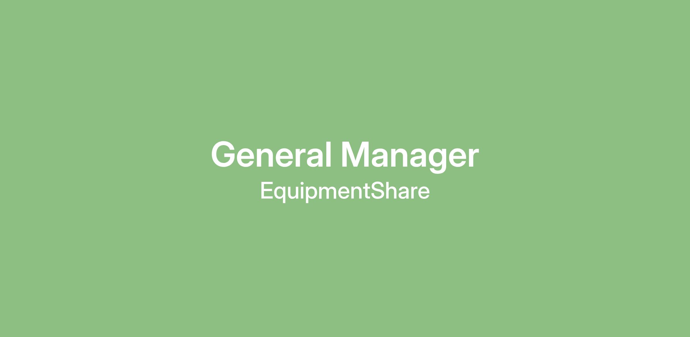 Build the Future with Us — EquipmentShare is Hiring a General Manager