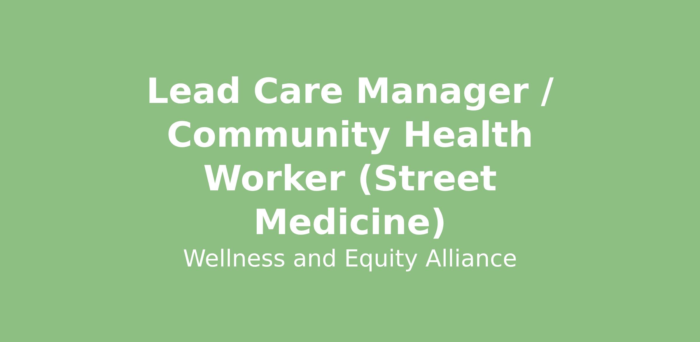 The WEA team is diverse, inclusive, and nimble enough to assemble teams of healthcare professionals within days using our proven local staff recruitment models to address population health crises and communicable disease outbreaks. The WEA teamβs partnership model is collaborative and allows hospitals, health jurisdictions, state/local government agencies to provide timely care using equity-based strategies for individuals and marginalized communities.Elevate your career to new heights with an opportunity that transcends traditional healthcare boundaries!Wellness Equity Alliance is actively seeking compassionate and driven individuals for several pivotal roles in our groundbreaking Street Medicine program. Street Medicine is an innovative and compassionate approach to healthcare, designed to meet individuals experiencing homelessness right where they are: on the streets, in shelters, or within underserved communities. Working for WEA is more than a job; it's a calling to serve those who are most in need, directly in their environment.