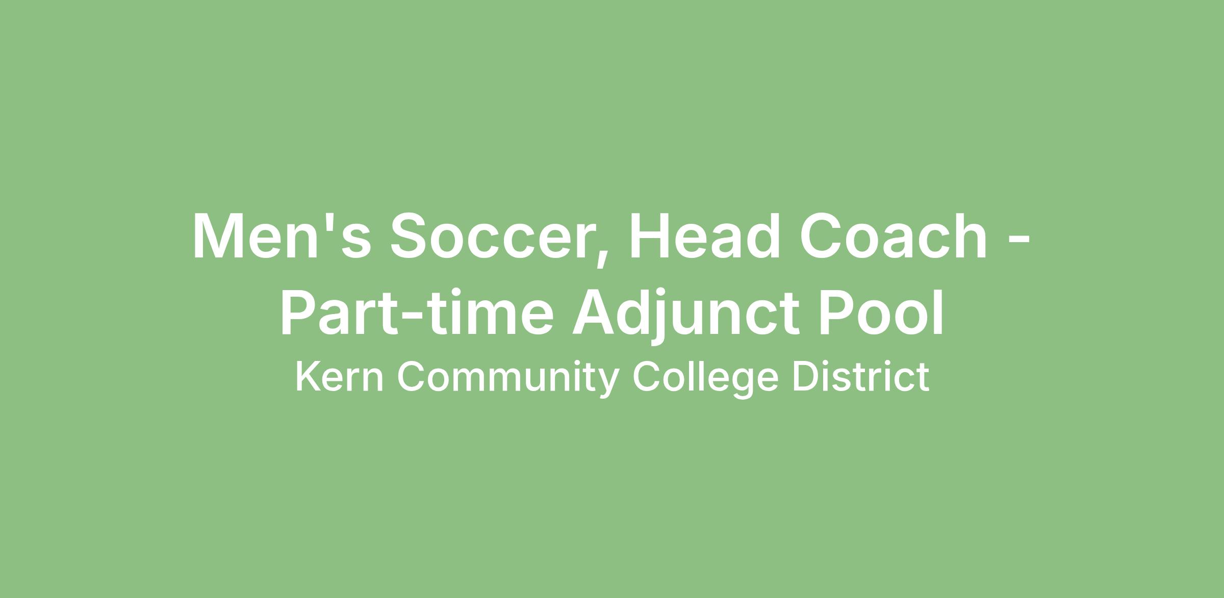 This is an adjunct, part-time coaching Physical Education and Athletics – men’s soccer coach. This assignment includes a coaching assignment teaching intercollegiate soccer to a student population that is highly diverse in terms of academic preparation, cultural, socioeconomic, and ethnic backgrounds as well as physical and learning abilities.