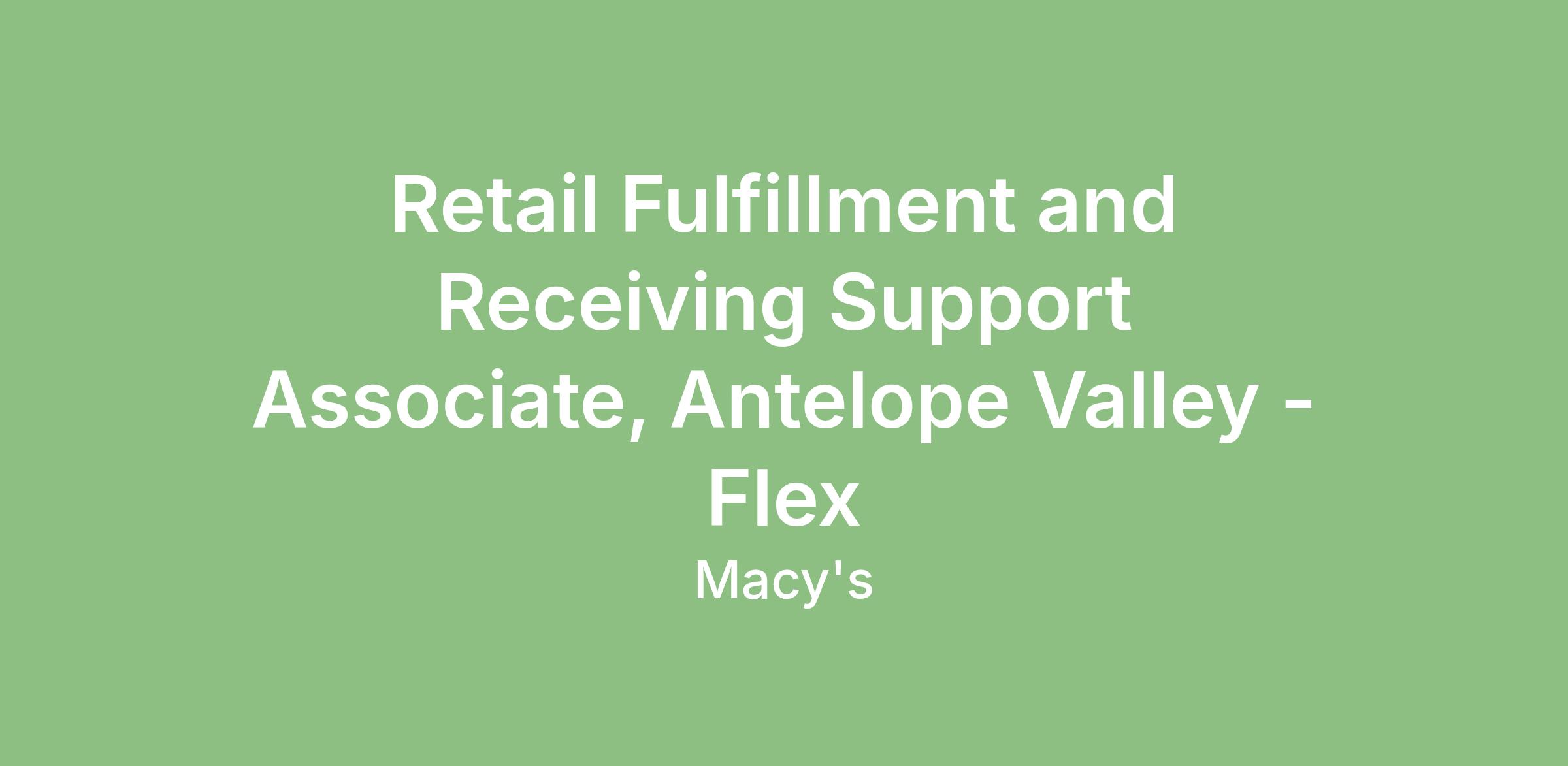 This job description is not all-inclusive. Macy's, Inc. reserves the right to amend this job description at any time. Macy's, Inc. is an Equal Opportunity Employer, committed to a diverse and inclusive work environment.