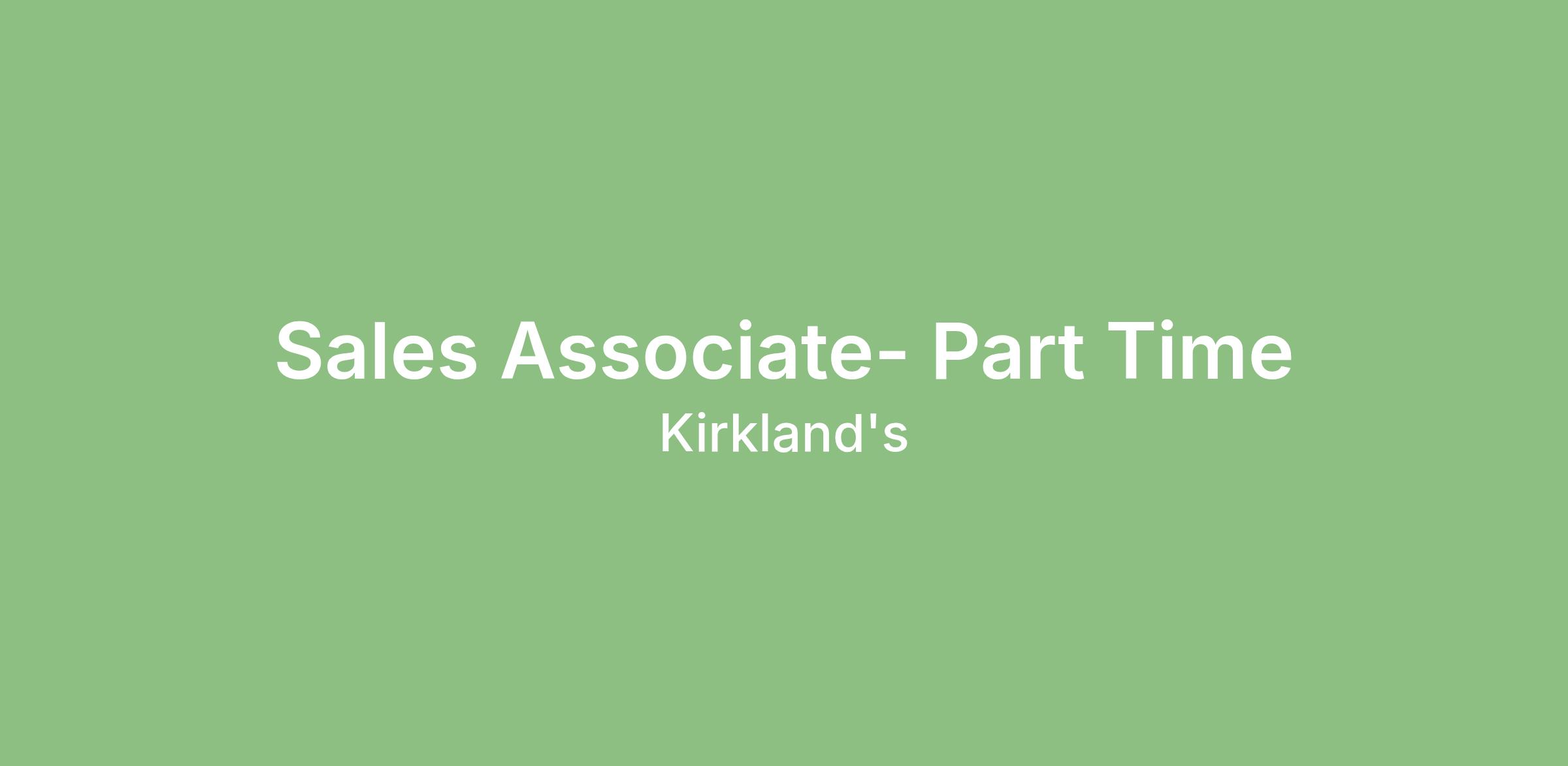 The primary responsibility of a Sales Associate is to provide an exceptional shopping experience to every customer utilizing Kirklandβs customer service model while assisting with all aspects of operations and merchandising with partnership and direction from the management team. Sales Associates drive sales growth by flexing into multiple roles including selling, cashiering, replenishing, setting floorsets and/or cleaning. Serving the customer is always top priority regardless of the work area.