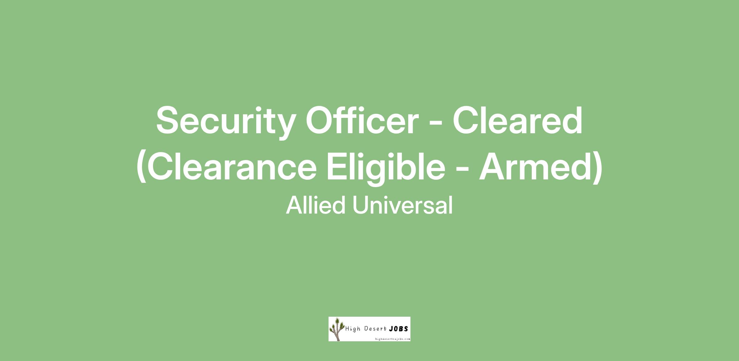 Allied Universal® is hiring a Security Officer - Cleared (Clearance Eligible - Armed). At Allied Universal, an Armed Cleared Security Officer is entrusted with sensitive information and given the responsibility to protect classified information and personnel. As an Armed Cleared Security Officer, you'll receive specialized training in site-specific security protocols associated with your clearance level, allowing for skill development and professional growth in the security field.