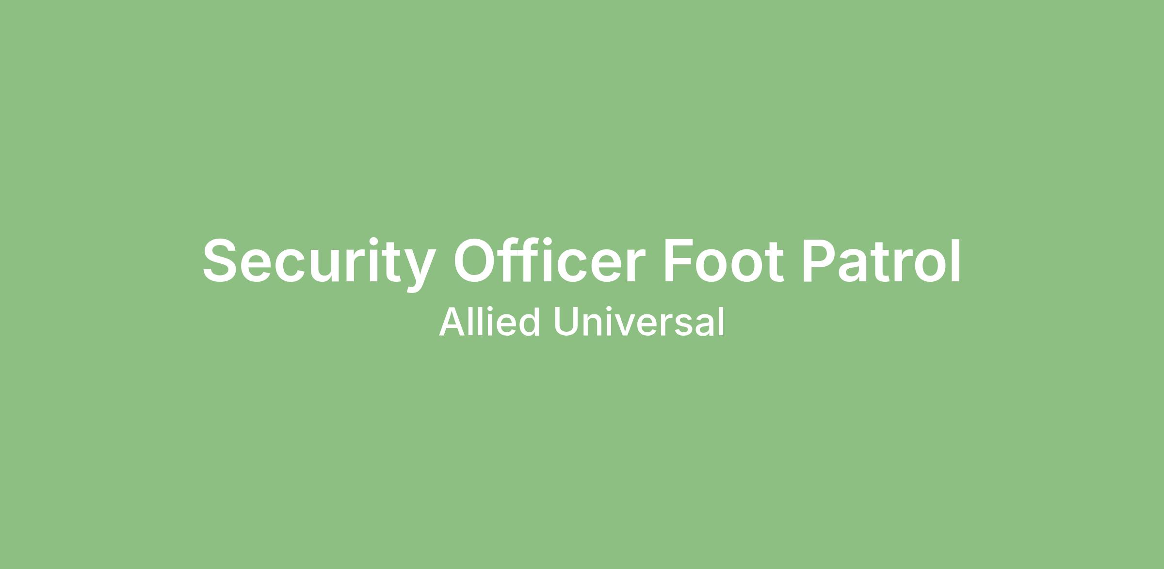Allied Universal® is an Equal Opportunity Employer. All qualified applicants will receive consideration for employment without regard to race/ethnicity, age, color, religion, sex, sexual orientation, gender identity, national origin, genetic information, disability, protected veteran status or relationship/association with a protected veteran, or any other basis or characteristic protected by law. For more information: www.aus.com