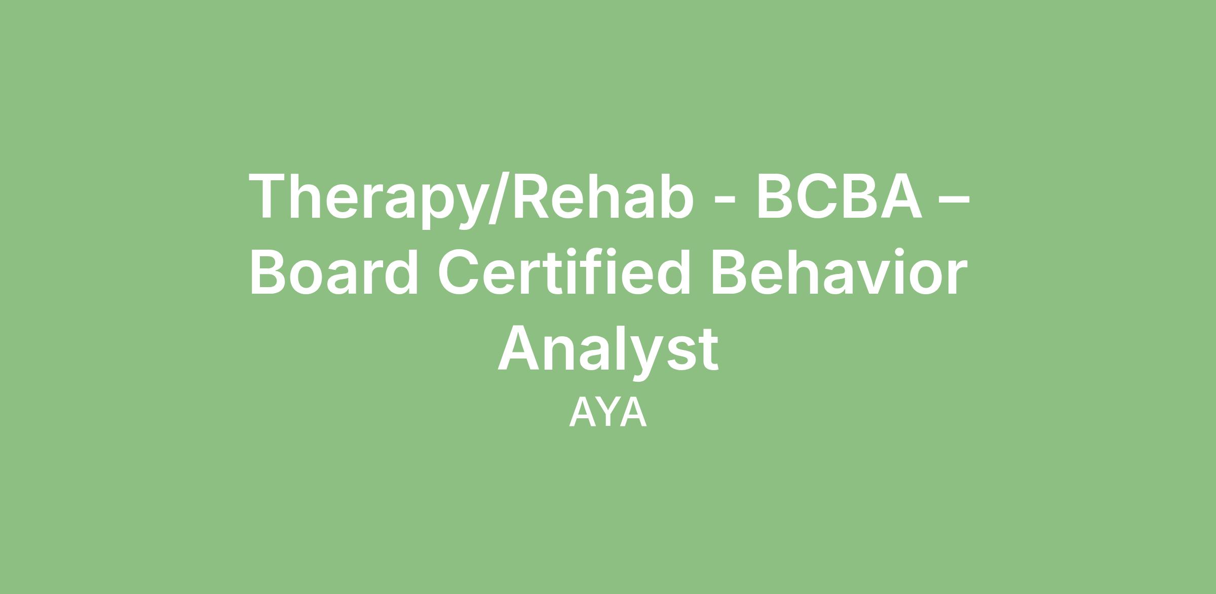 Therapy/Rehab - BCBA – Board Certified Behavior Analyst