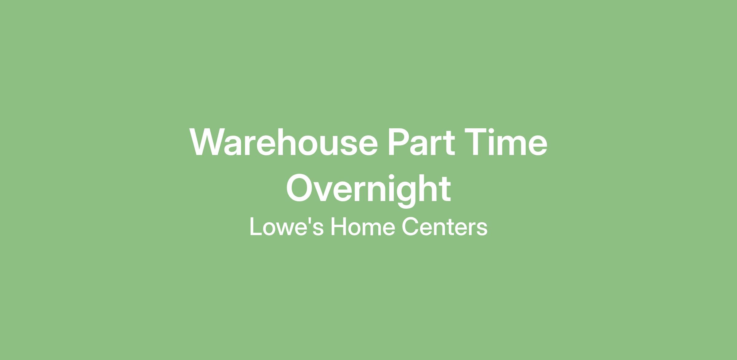 Your Day at Lowe’sYou’ll keep shelves stocked and backrooms organized by unloading freight, moving products to the sales floor, and maintaining a clean, safe workspace. You may also assist customers in locating or loading products. Most shifts are physically active, and scheduling may include morning, evening, or overnight hours based on store needs.